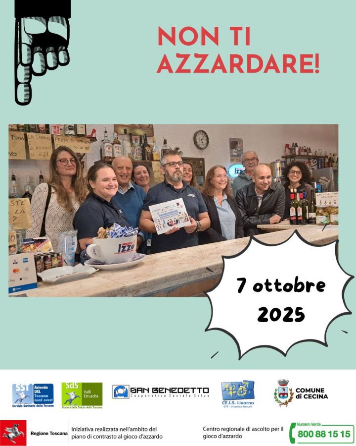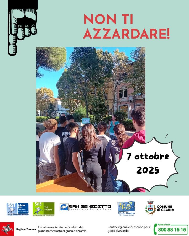 Nel mese scorso Cecina ha ospitato lo Slot Mob, un appuntamento dedicato alla sensibilizzazione contro il gioco d’azzardo e alla promozione del gioco sano. L’iniziativa si è svolta il 7 ottobre in piazza Carducci, dove due classi delle scuole medie Leonardo da Vinci hanno partecipato ad attività ludiche educative proposte dal progetto di contrasto all’azzardo “Non ti azzardare!” in collaborazione con l’Associazione Bandus.
